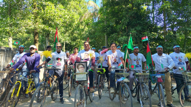 এ সময় বিএনপি, অঙ্গ ও সহযোগী সংগঠনের নেতা- কর্মীরা সাইকেল চালিয়ে এ বর্ণাঢ্য শোভাযাত্রায় অংশগ্রহণ করেন।