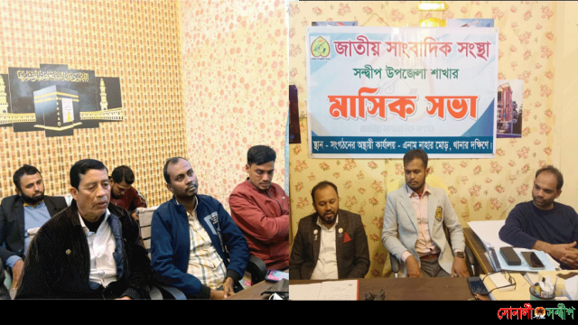 জাতীয় সাংবাদিক সংস্থা সন্দ্বীপ উপজেলা শাখার মাসিক সভা অনুষ্ঠিত হয়েছে। শনিবার (৭ ডিসেম্বর) সন্ধ্যা ৬টায় এনাম নাহার মোড়স্থ সংগঠনের অস্থায়ী কার্যালয়ে এ সভা অনুষ্ঠিত হয়।