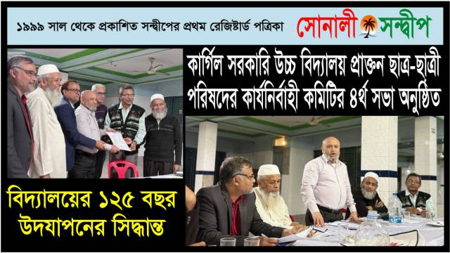 কার্গিল সরকারি উচ্চ বিদ্যালয়ের ১২৫ বছর উদযাপন ও ১২৫ বছরে আধুনিক শিক্ষা বিস্তারে সন্দ্বীপে কার্গিল সরকারি উচ্চ বিদ্যালয়ের ভুমিকা, প্রাক্তন শিক্ষকদের জীবনী, স্কুল নিয়ে প্রাক্তন ছাত্রদের স্মৃতিচারণমূলক লেখা ও পরিষদের দাতা ও আজীবন সদস্যদের তালিকা সহ একটি প্রকাশনা করার সিদ্ধান্ত গৃহীত হয়।